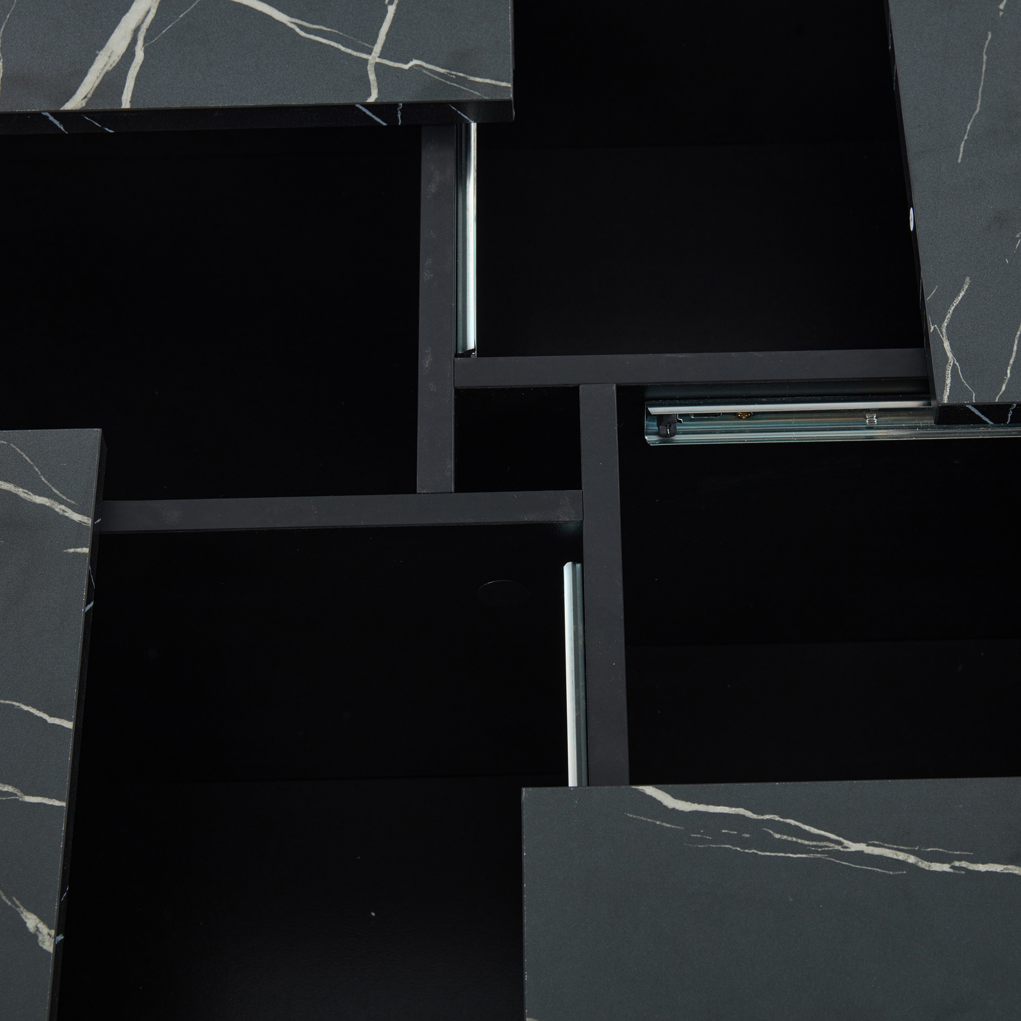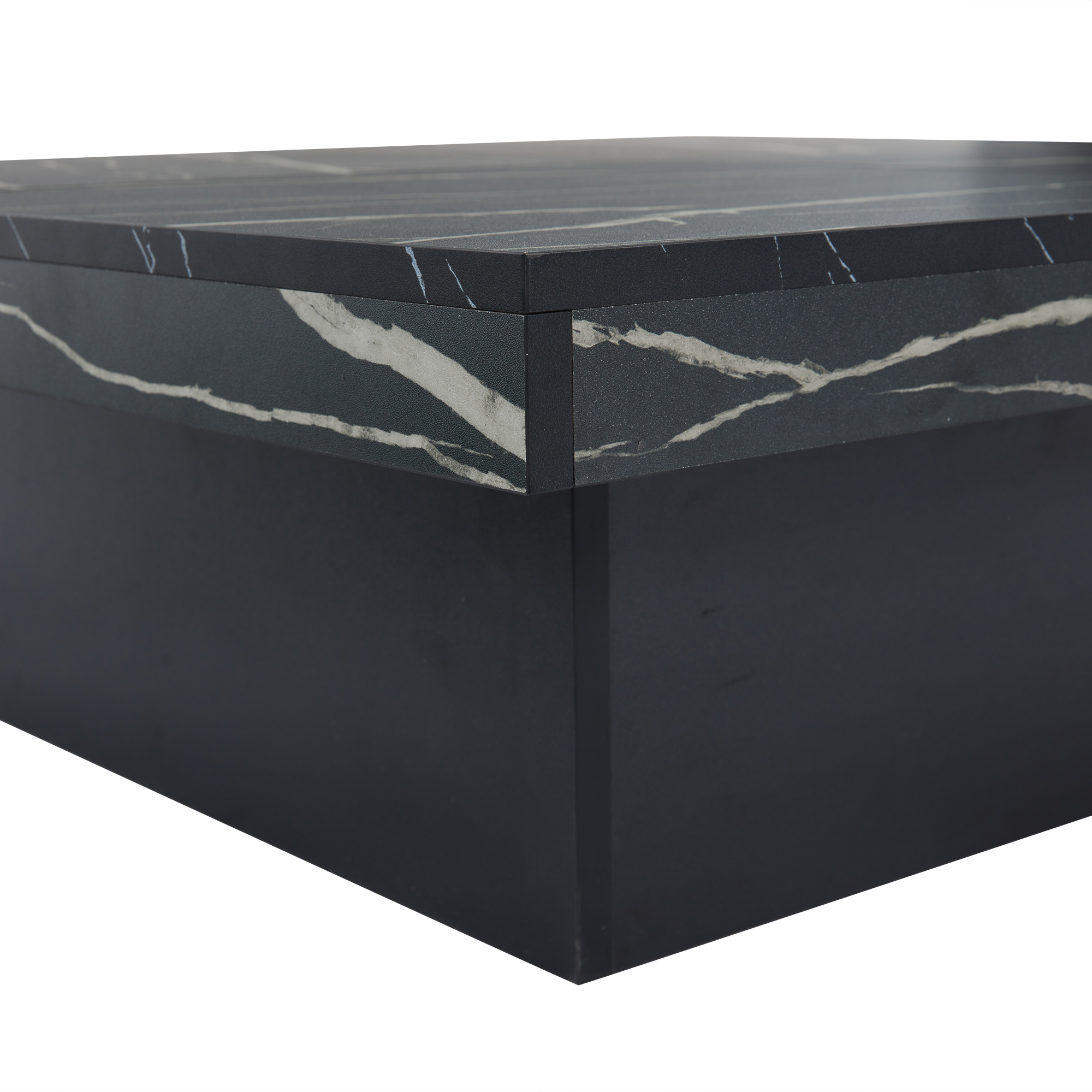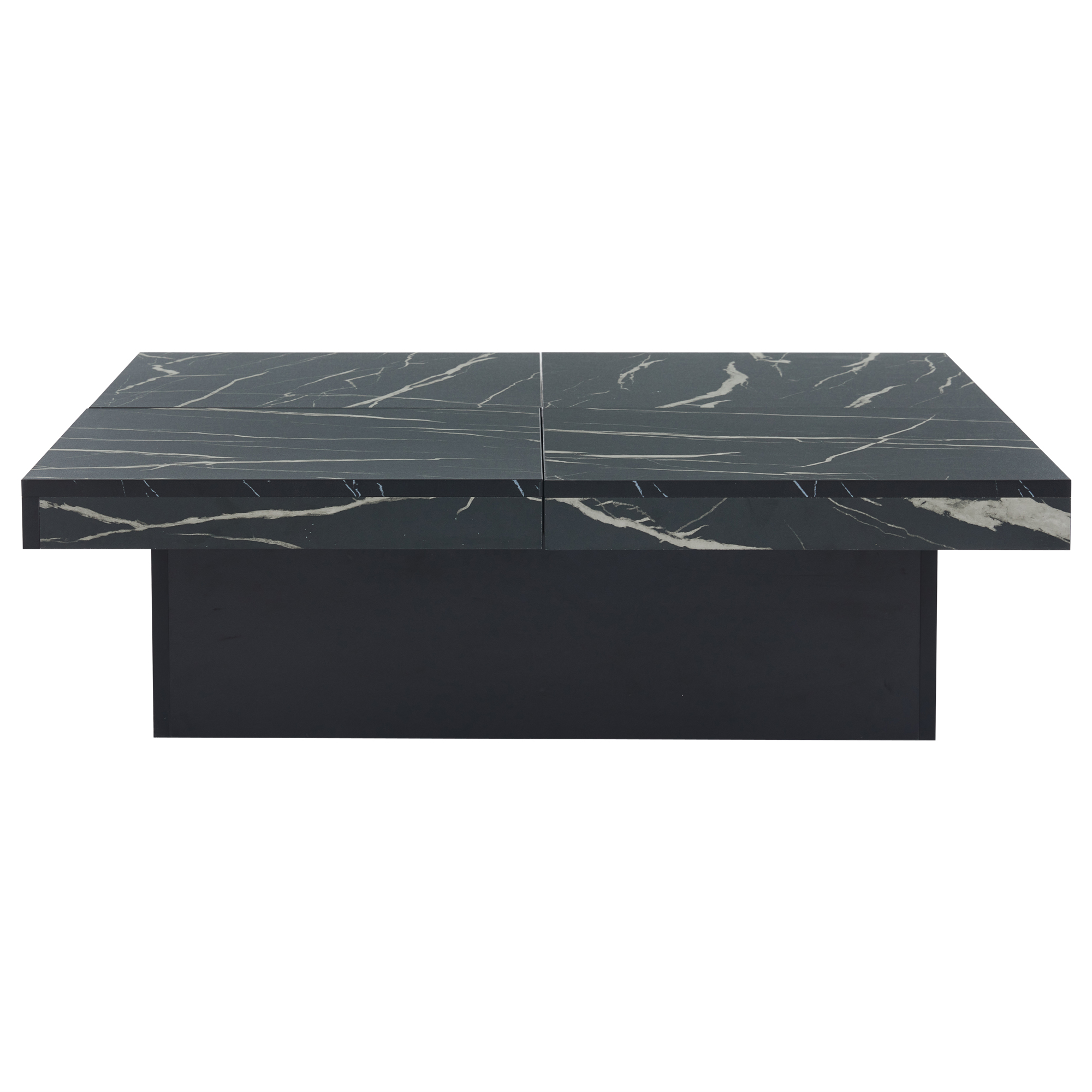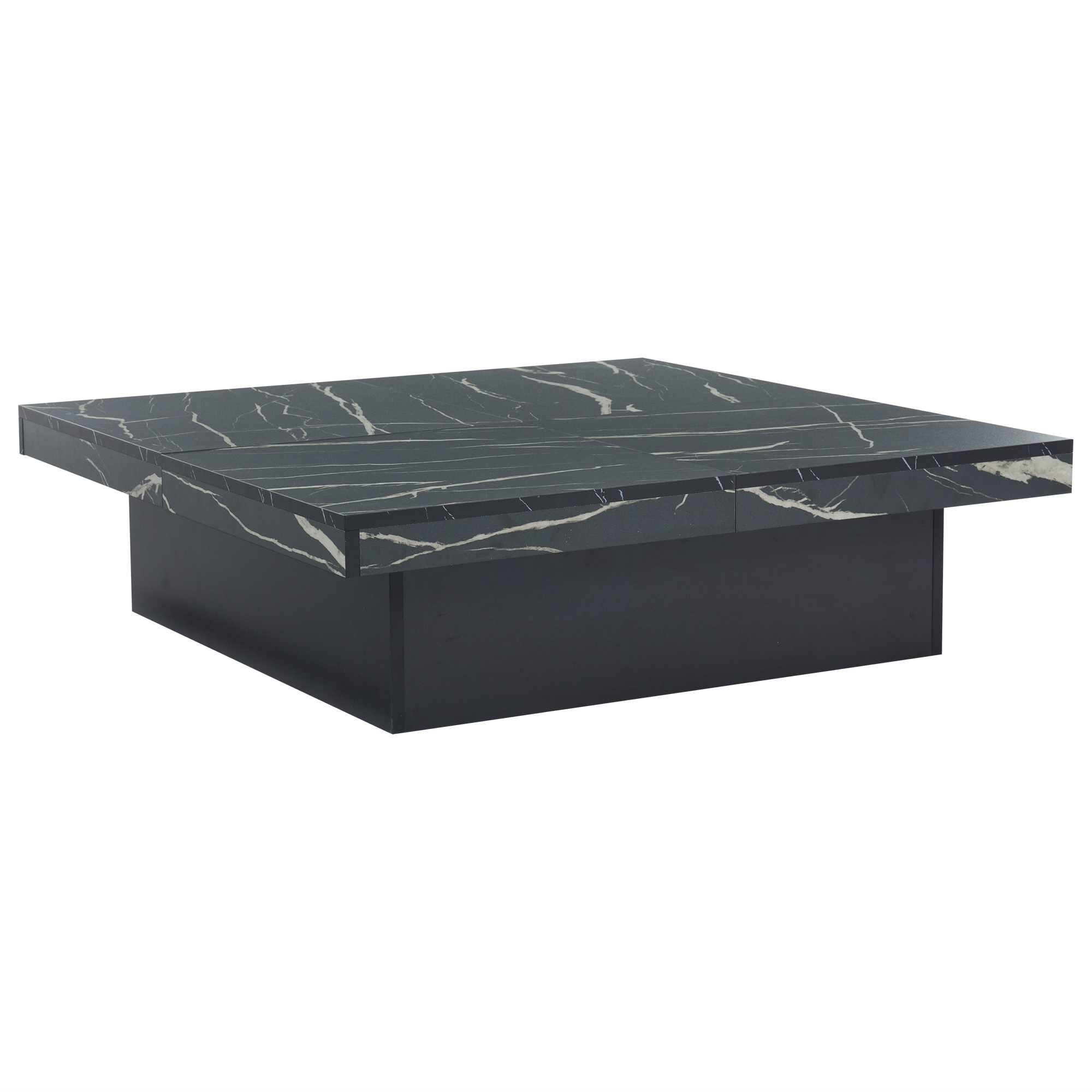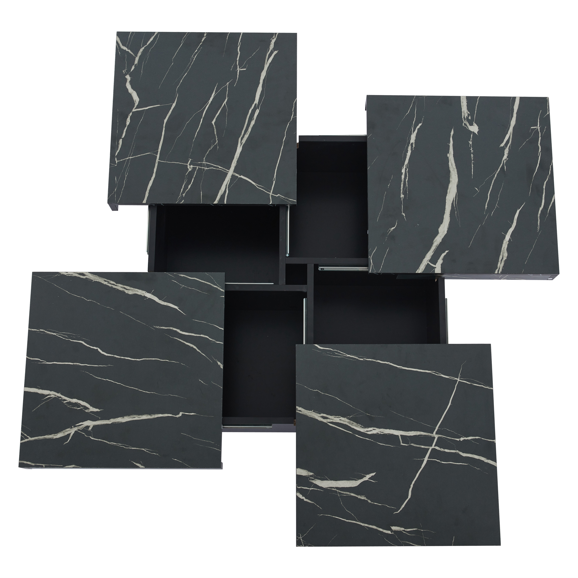 Modern Black Marble Square Coffee Table with 4 Drawers – 90x90cm